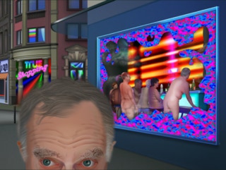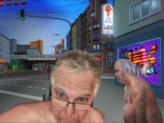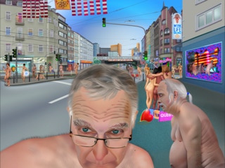 Die Grafiken sind also keine im Werk objektvierte Gesten wie bei der Malerei oder Zeichnung. Kein expressionistischer Schwung, kein Detaillieren mit ruhiger Hand, keine freie Bewegung, nicht mal auf dem Grafiktablett, kein Fühlen und Riechen von Pinsel und Farbe, keine sinnliche Beziehung zum Material ist in ihnen enthalten.